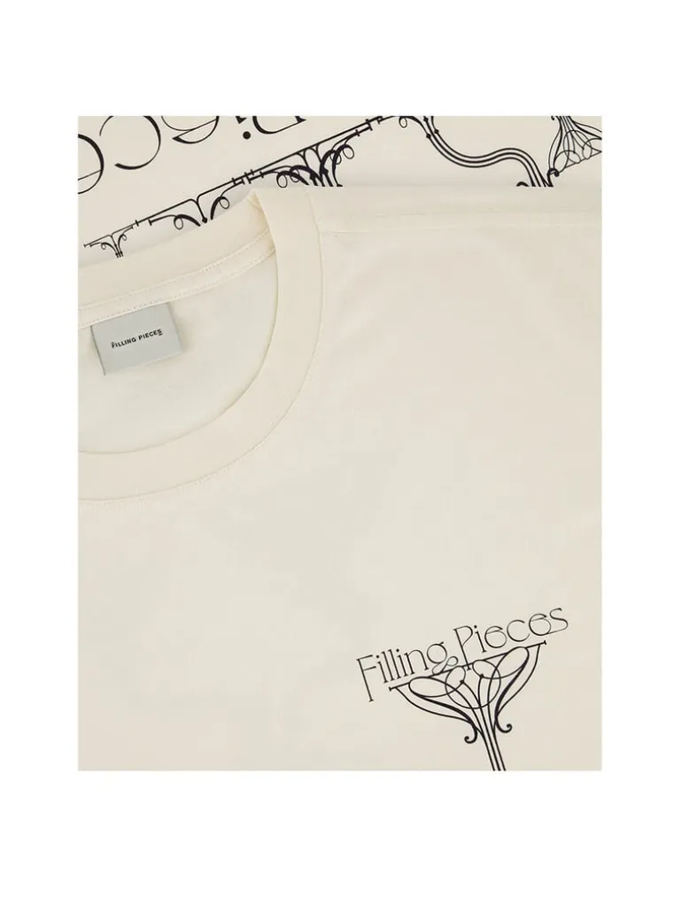 Het Filling Pieces Champagne T-shirt in antiek wit heeft een zachte, gebroken witte kleur met een strak en minimalistisch ontwerp, dat elegantie en een casual stijl combineert voor dagelijks gebruik.