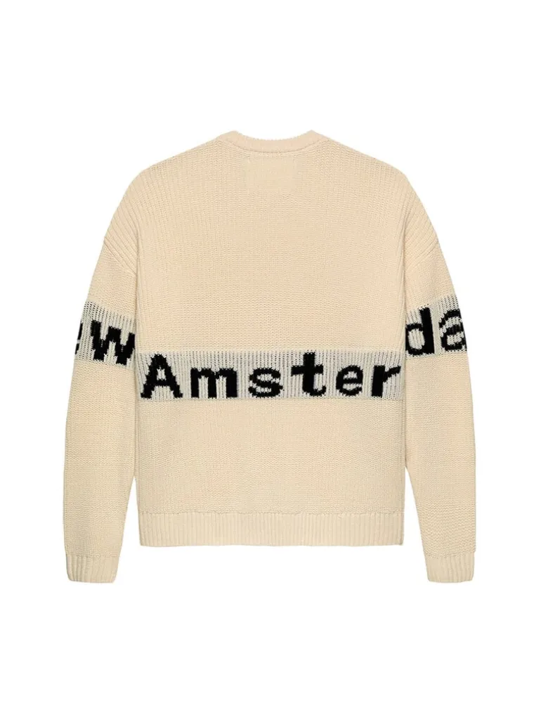 De New Amsterdam Surf Association Name Crew Knit in ecru en zwart heeft een stijlvolle, casual look met subtiele NAS-branding en comfortabel comfort.
