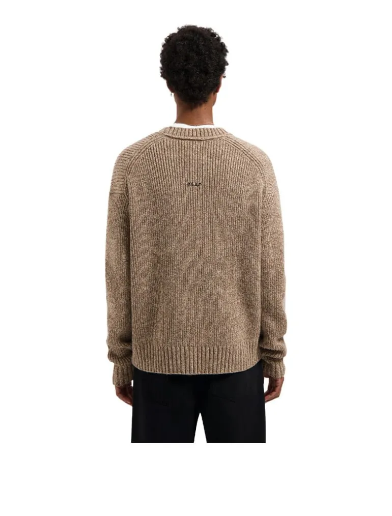 OLAF Essential Melange gebreide crewneck in Foxtrot – een comfortabele en veelzijdige crewneck trui met een gemêleerd breipatroon in een stijlvolle Foxtrot kleur.