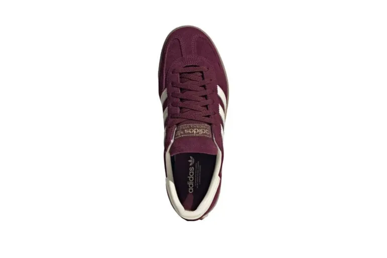 The Handball Spezial W in Maroon, Cream, White, and Gold Metallic features a stylish, retro-inspired design with premium materials for performance and classic appeal.