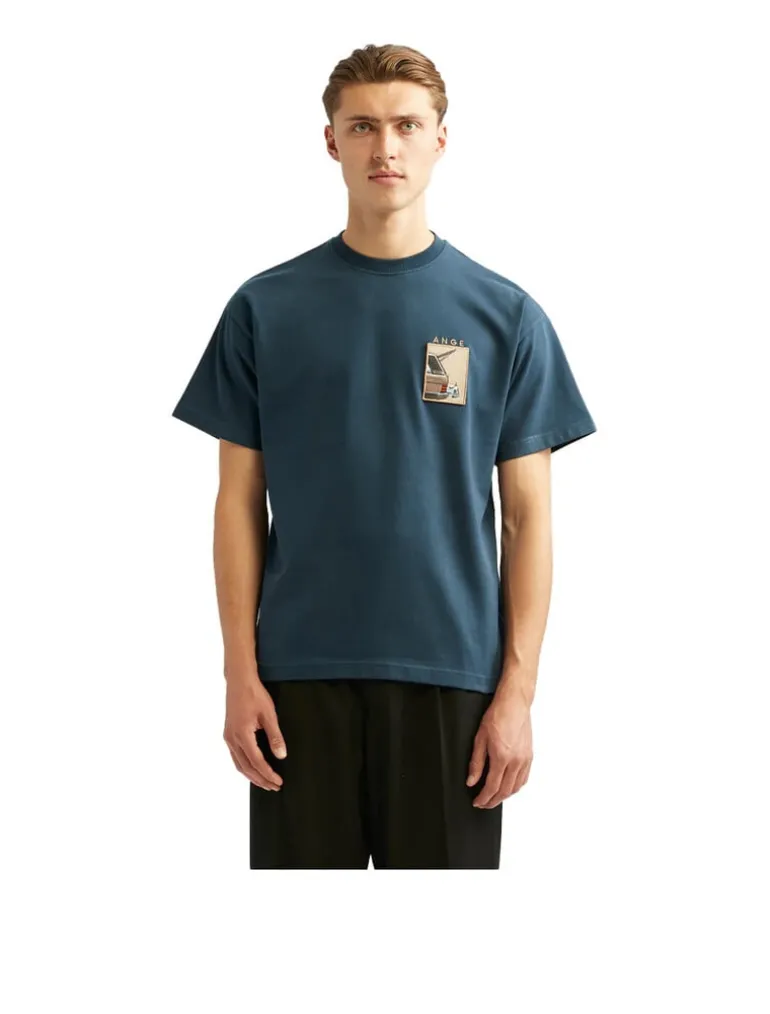 De Ange Projects Wine Drive Patch Tee Navy heeft een marineblauwe basis met een opvallend patchontwerp en combineert een casual stijl met comfort voor dagelijks gebruik.