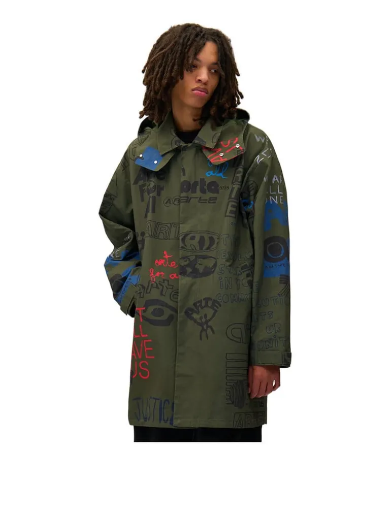 De Arte Antwerp Art Saves Coat in donkergroen heeft een stijlvol design met moderne details. Perfect voor veelzijdig dagelijks gebruik met een vleugje verfijning.