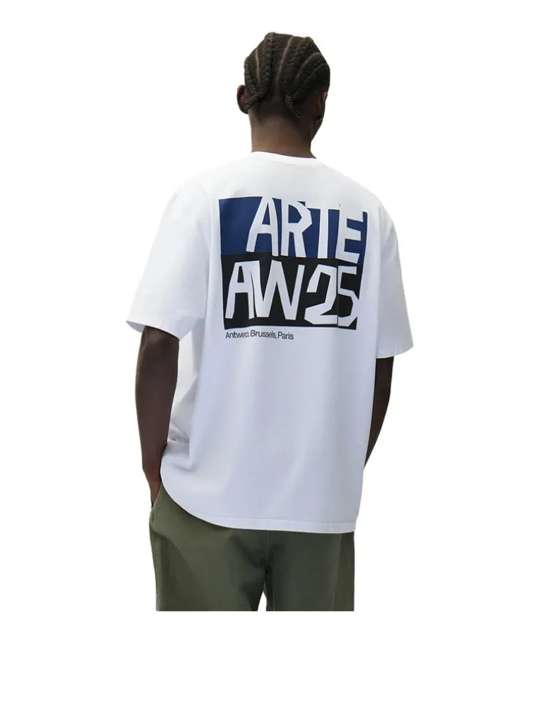 Arte Antwerp Cut Out Print T-Shirt Wit – een wit T-shirt met een opvallend cut-out printontwerp, dat een eigentijdse stijl combineert met artistieke details voor een frisse, opvallende look.