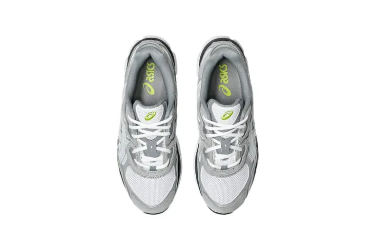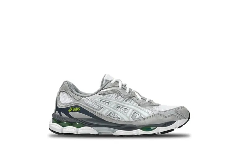 Asics Gel-NYC White Glacier Grey: Witte sneaker met grijze accenten, strak en veelzijdig.