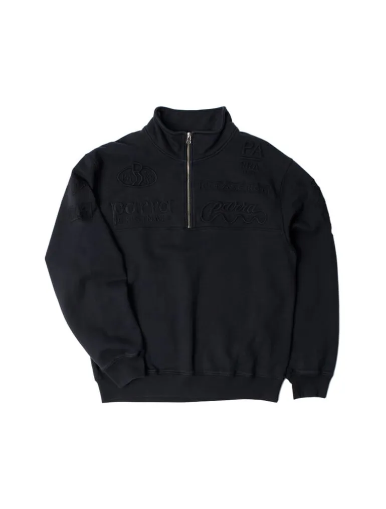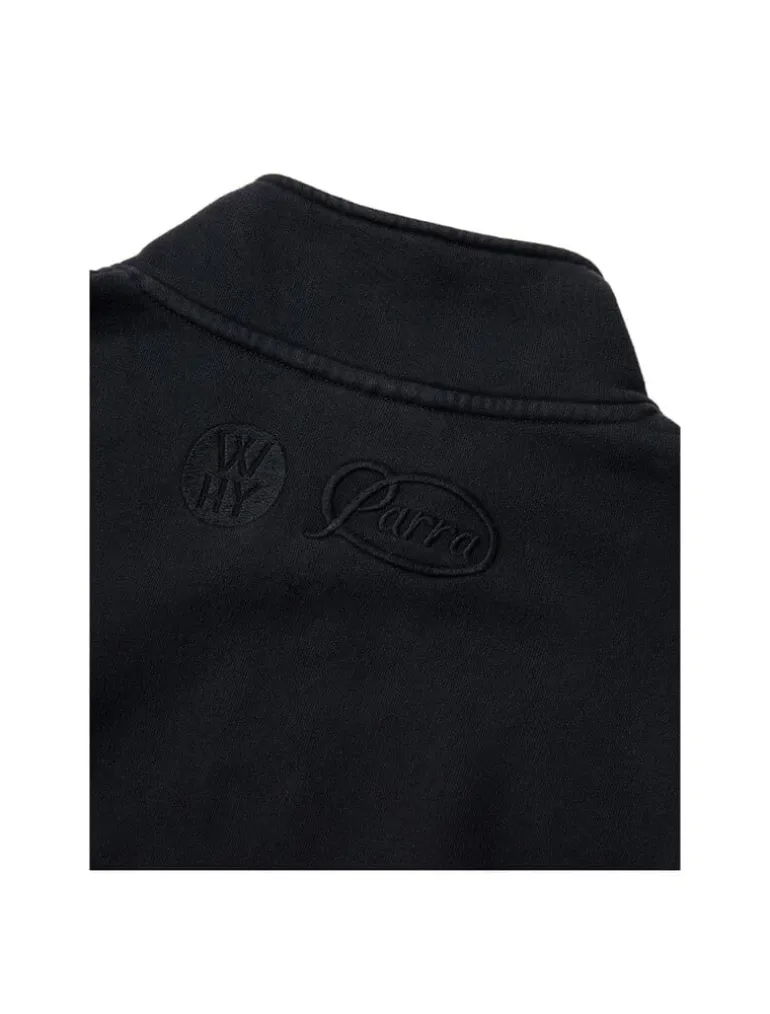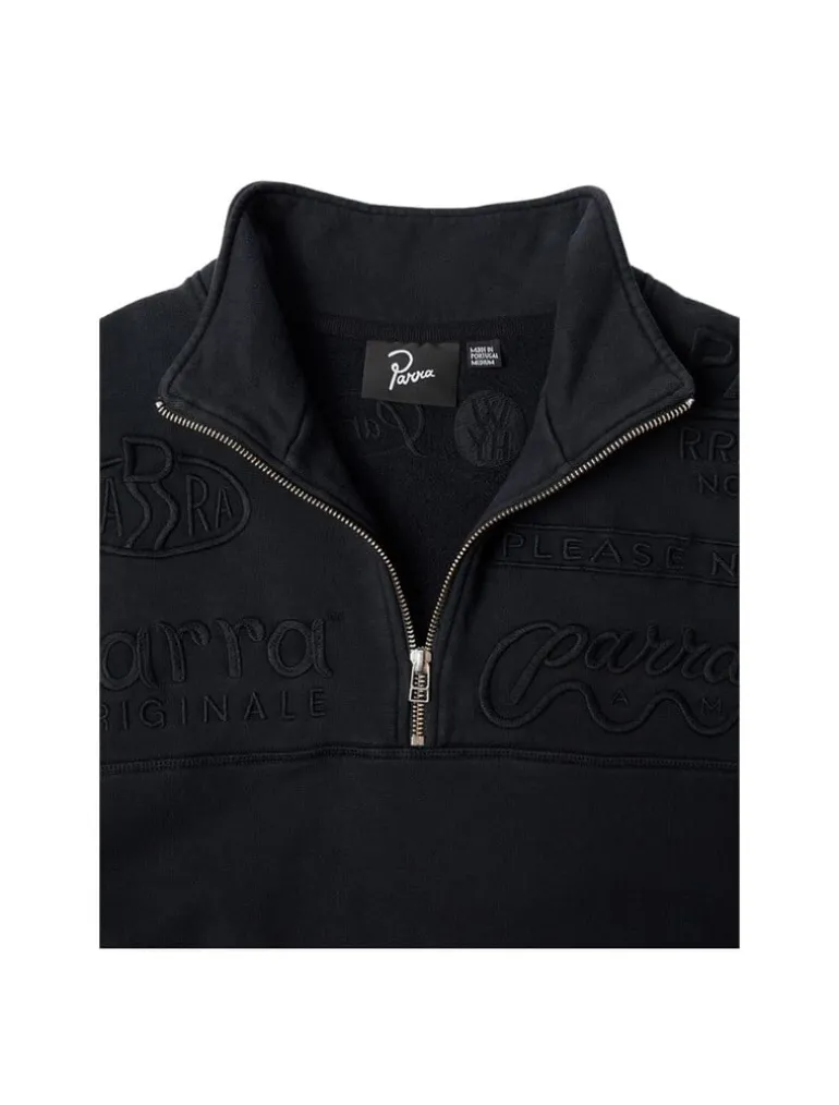 De By Parra Media Training Quarter Zip Pullover in zwart is een strakke, comfortabele pullover met een kwartrits, perfect voor casual of sportieve gelegenheden, met stijlvolle merkdetails.