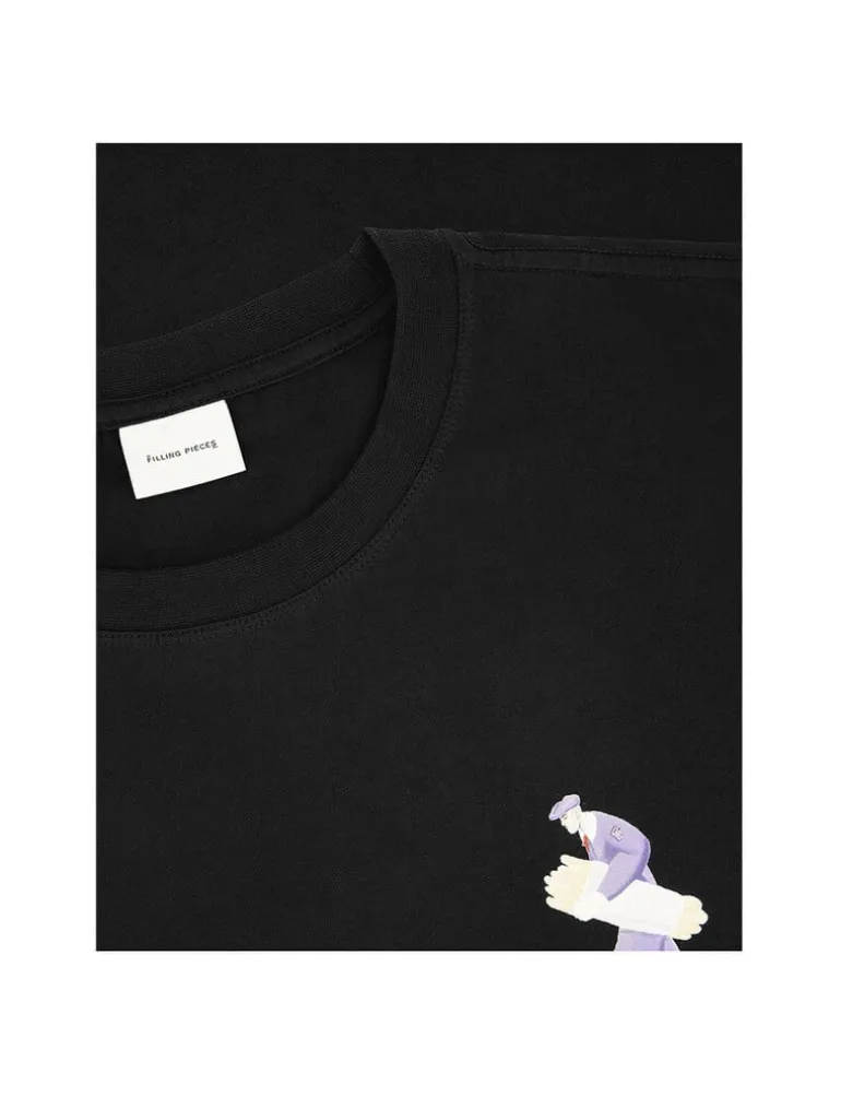 Het Filling Pieces Bakery T-shirt in zwart heeft een klassieke zwarte kleur met een eenvoudig, strak ontwerp, waardoor het een veelzijdig en stijlvol kledingstuk is voor dagelijks gebruik.