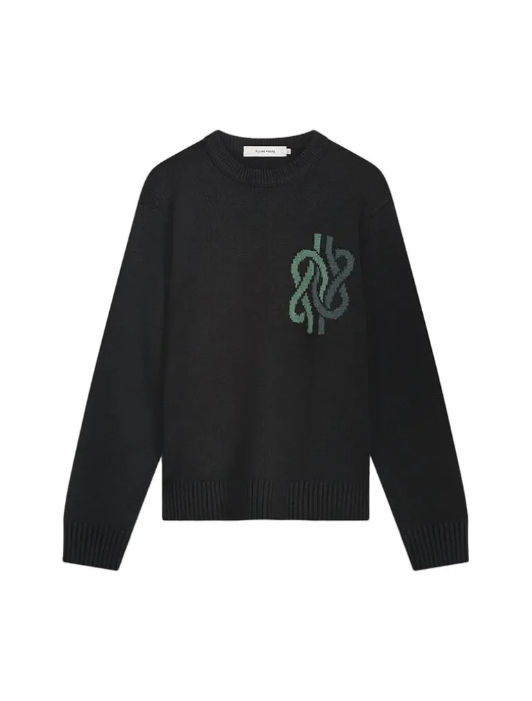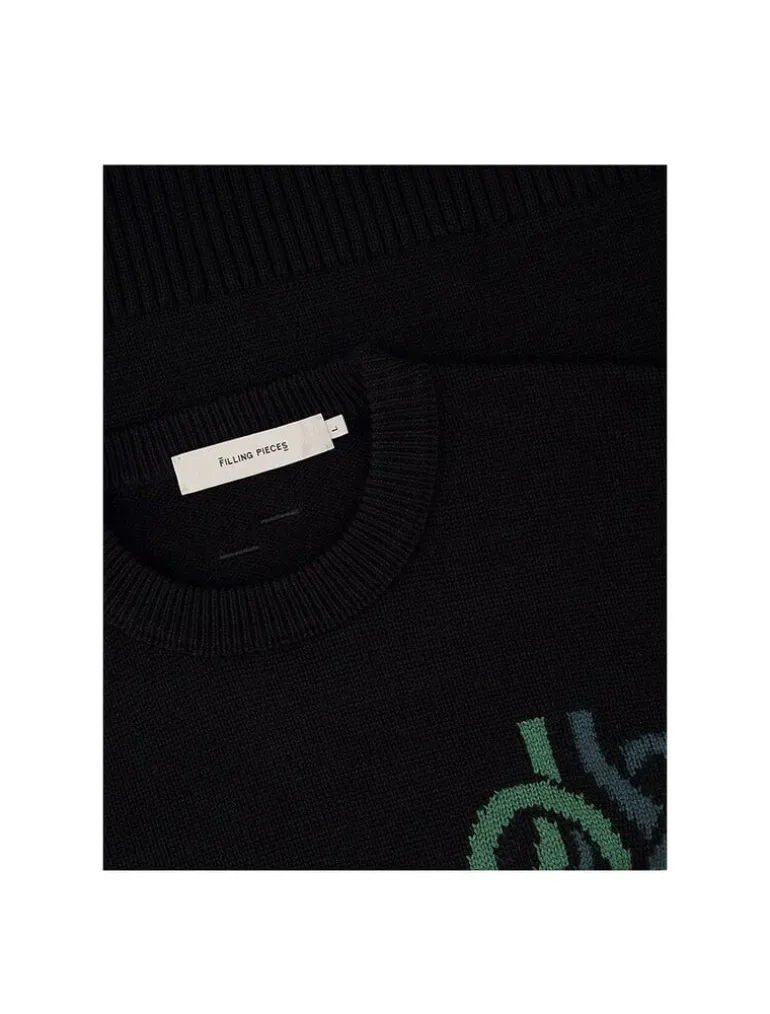 De Filling Pieces Knit Sweater Knot in Black is een stijlvolle, comfortabele trui met een minimalistisch ontwerp en subtiele details.