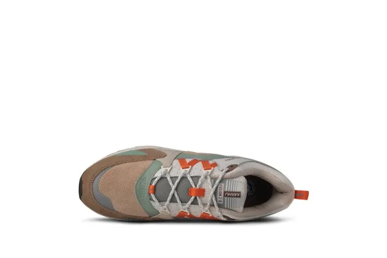 De Karhu Fusion 2.0 in Portabella en Nasturtium heeft een rijke, aardse portabella-kleur, aangevuld met heldere, energieke accenten van Oost-Indische kers, wat resulteert in een gedurfd en veelzijdig ontwerp.