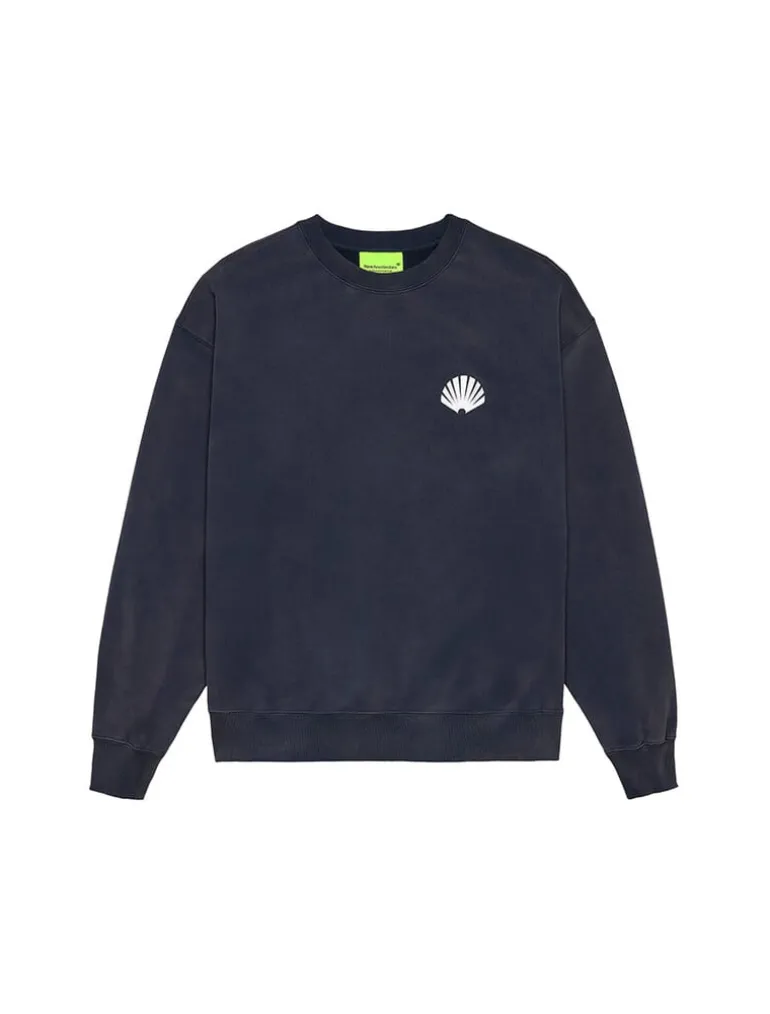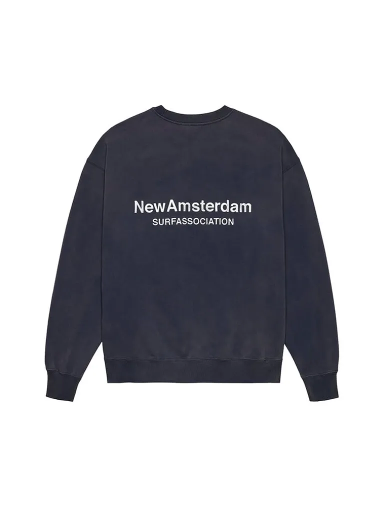 De New Amsterdam Surf Association Logo Crewneck in marineblauw is een klassieke, comfortabele sweater met het op surfen geïnspireerde logo, perfect voor een casual en sportieve stijl.