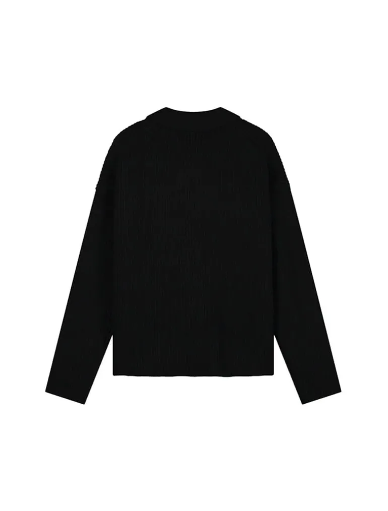 OLAF Gebreid Rits Vest Zwart – een strak zwart gebreid vest met een praktische ritssluiting, perfect voor een comfortabele en stijlvolle laagjeslook.