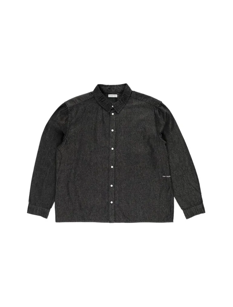 POP Trading Company Applique Logo Denim Shirt Black Denim