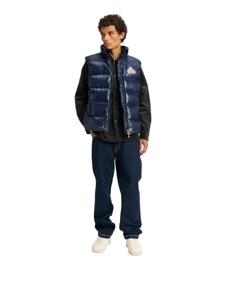 Het Pyrenex John Sleeveless Jacket in de kleur Admiral is een strak, lichtgewicht bovenkledingstuk dat warmte en stijl biedt en ideaal is voor wisselvallige weersomstandigheden en gelaagde looks.
